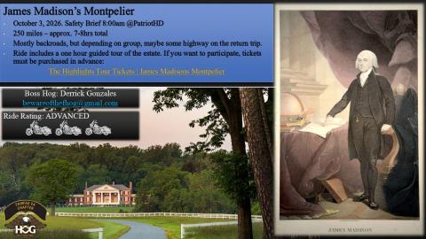 Saturday Oct 3rd, 2026 at 8:00am at Patriot Harley Davidson.