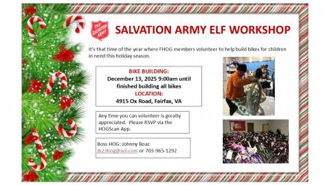 It's that time of year where Fairfax HOG members volunteer to help build bikes for children in need this holdiay season. The bike building will be at the Salvation Army. The event starts at 9:00am and goes until all bikes are built. Anytime you can volunteer is appreciated.