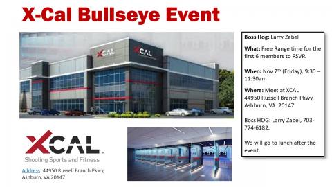 The first 6 FHOG members to RSVP will enjoy free range time at XCAL in Ashburn VA. After range time, the plan is to go have lunch together at a local restaurant. We will meet at XCAL for this event.