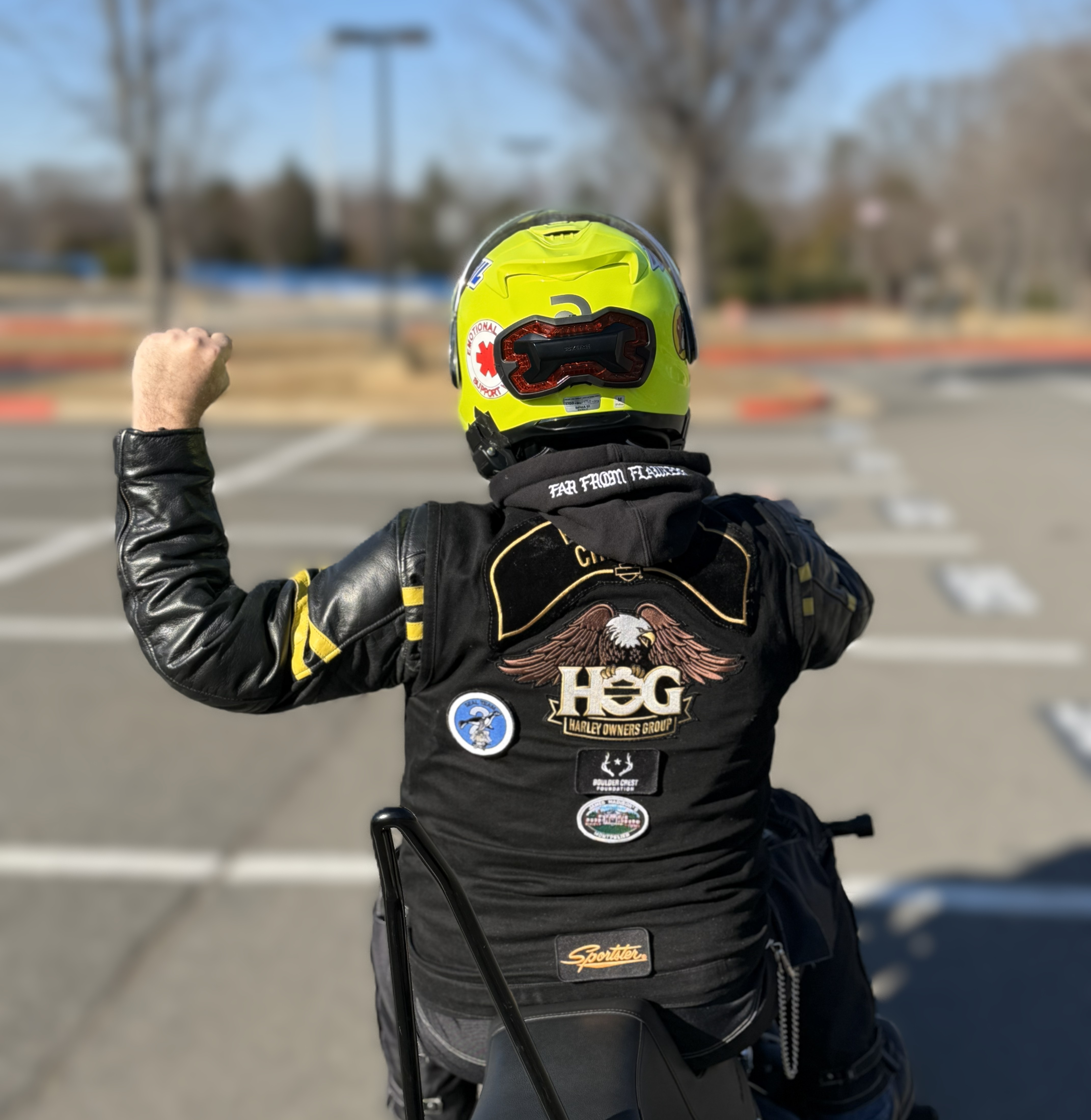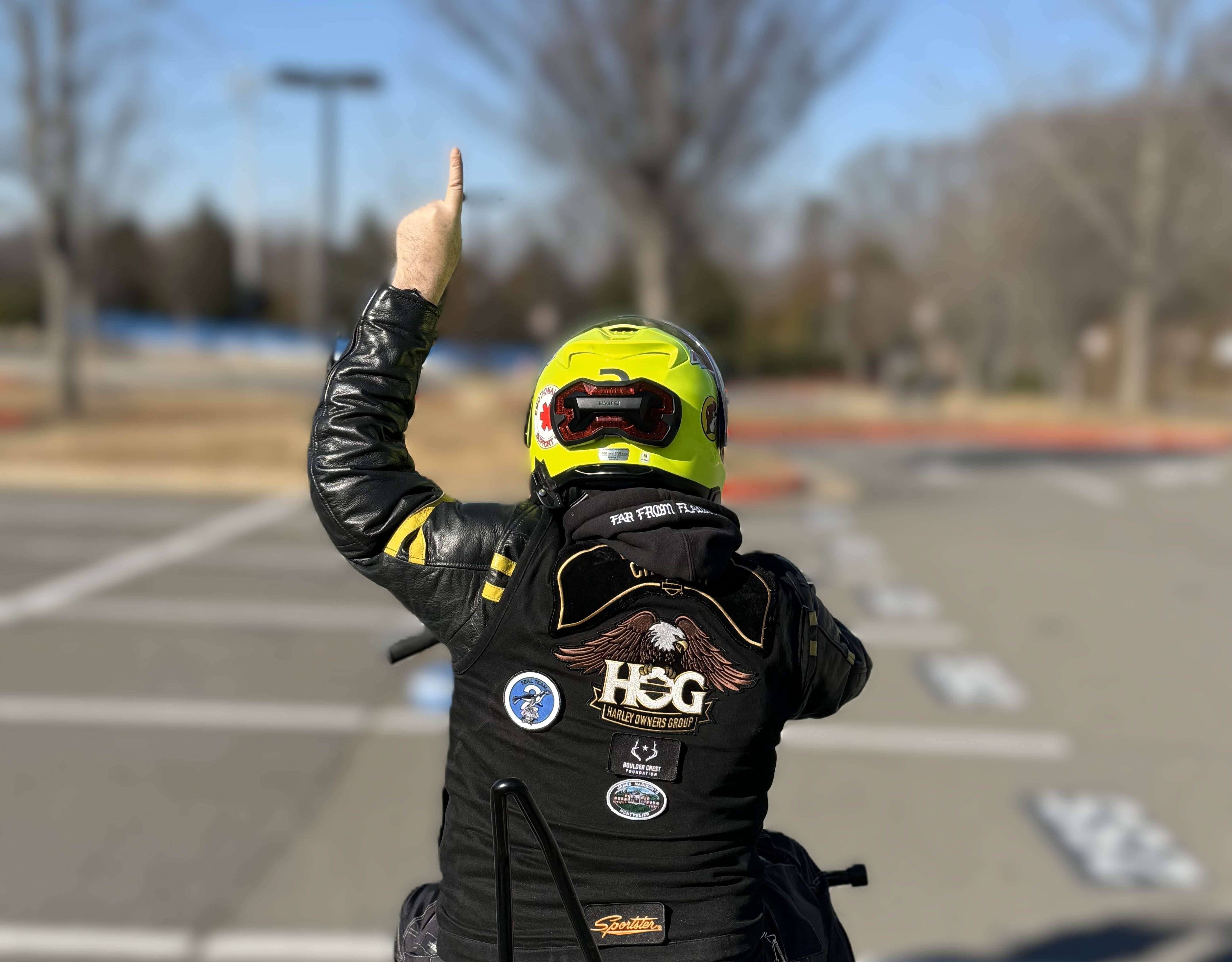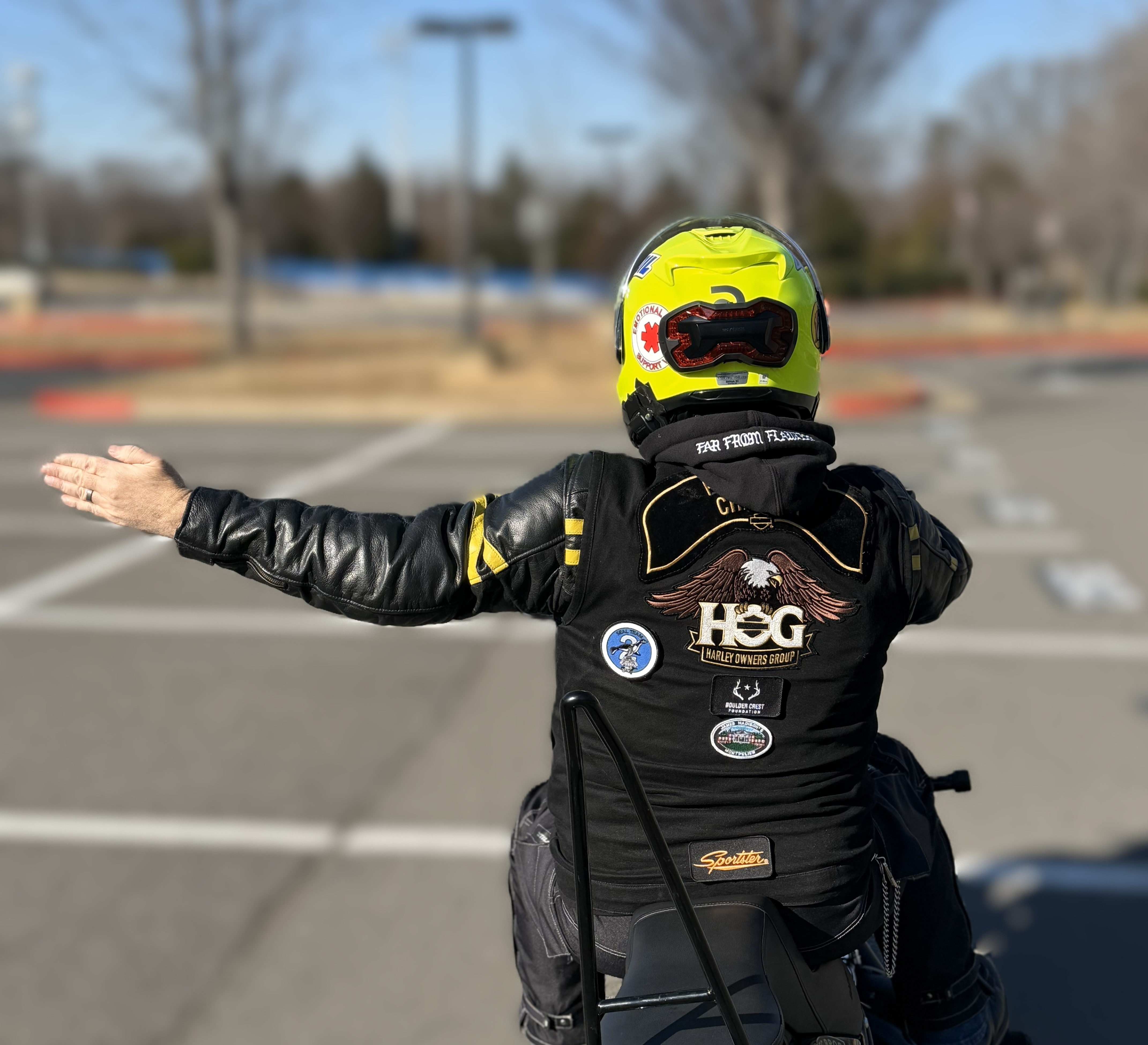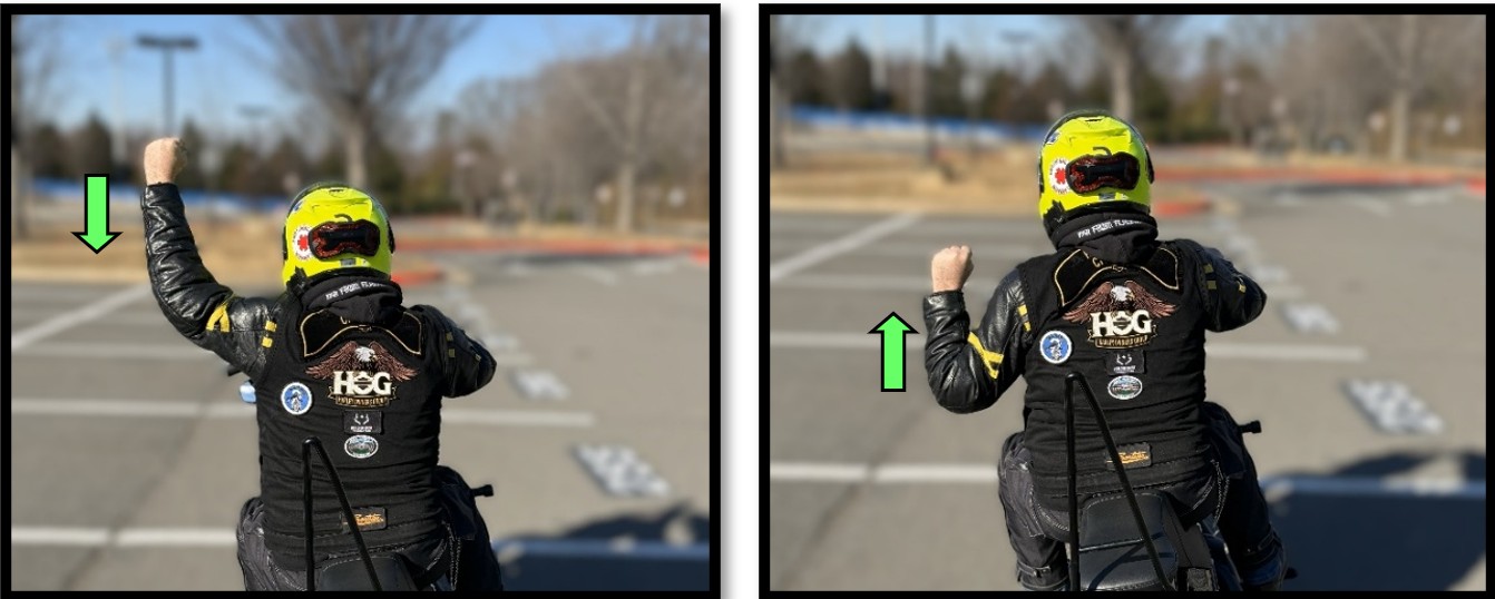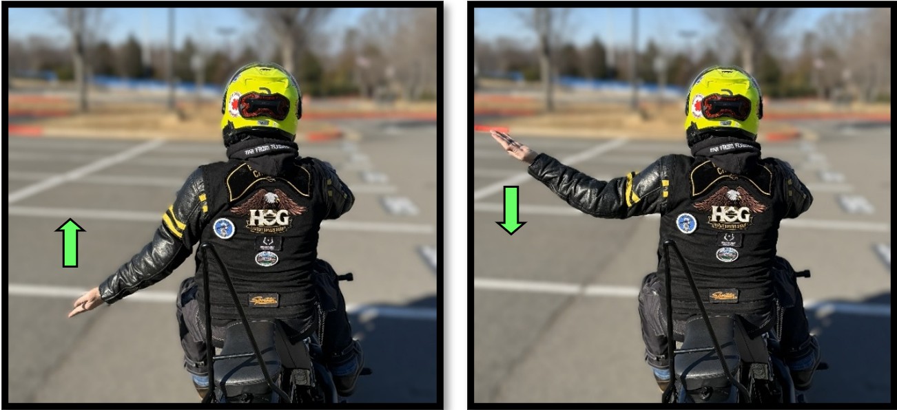 There are a variety of hand signaling methods within the group riding community, but it is important to recognize that National H.O.G.® does not prescribe a specific technique or procedure. Each Chapter can define their own hand signals as they see fit. Nevertheless, the foundation of F.H.O.G.’s hand signals come from the best practices of the Motorcycle Safety Foundation®. All signals, unless explicitly stated, are to be passed back by all riders in a group.