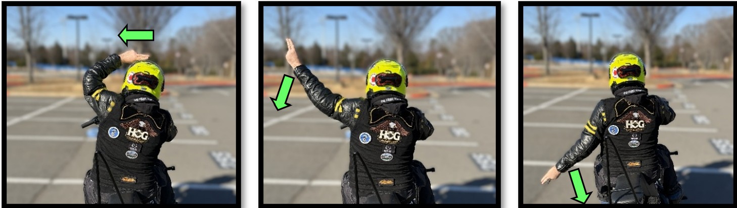 All hand signals can be found on the Group Riding Handbook: https://hogscan.s3-us-west-2.amazonaws.com/5395/s3fs-public/road_captain...